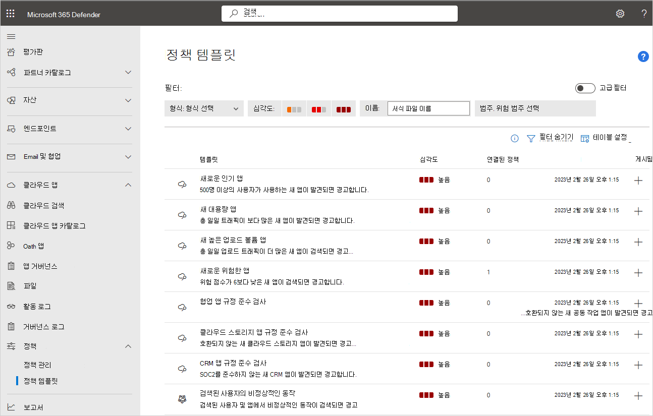 템플릿의 전체 목록은 Microsoft Defender 포털을 검사.