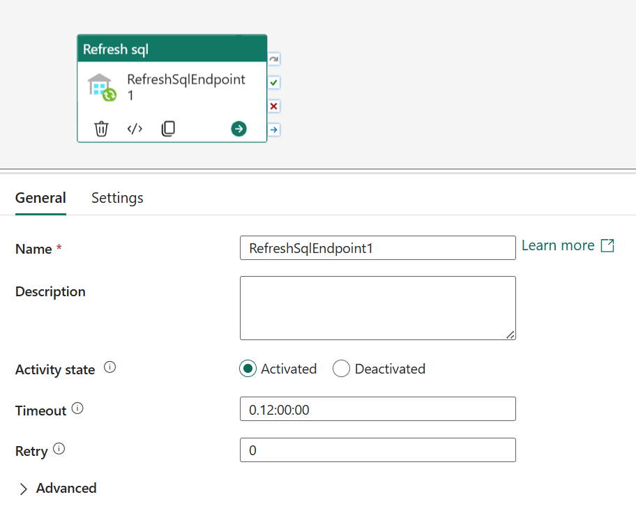 수동 새로 고침 또는 임시 프로세스에 의존하지 않고 SQL 엔드포인트가 최신 업데이트를 즉시 반영하도록 하려면 이 작업을 사용합니다. 파이프라인에서 이 활동을 사용할 때:
