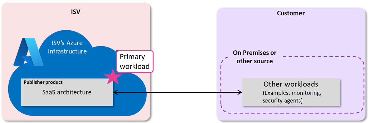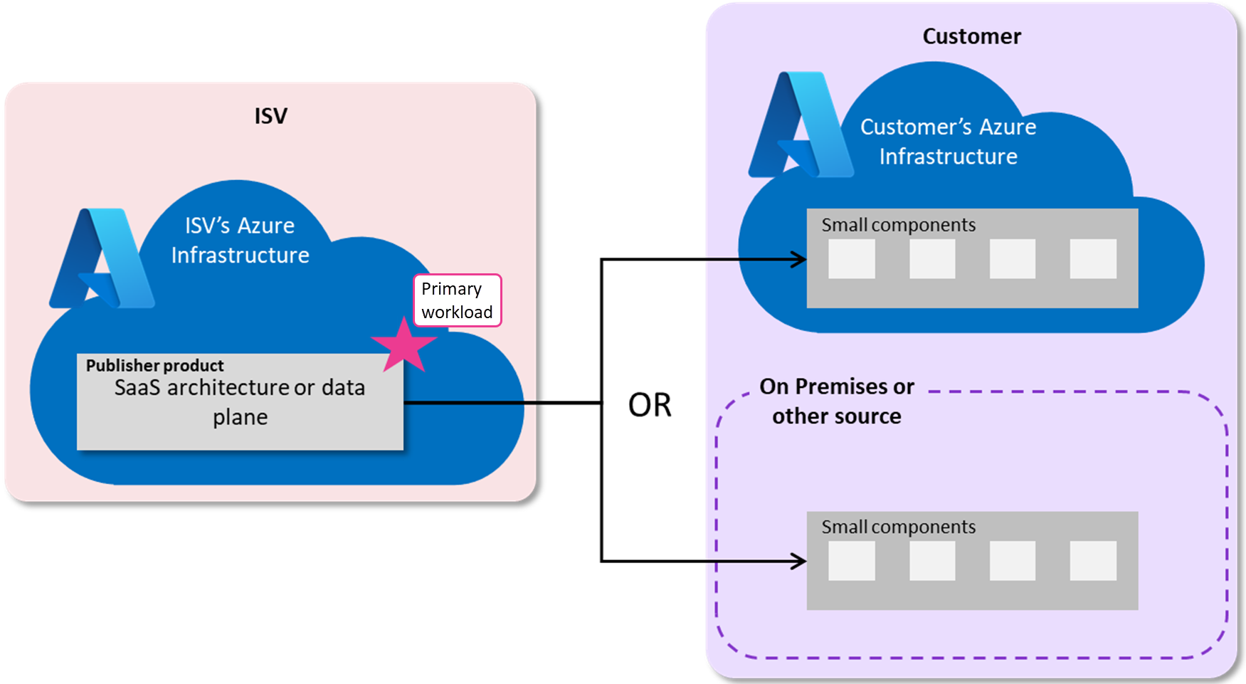 Azure 플랫폼에 기반한 SaaS는 더 작은 주변 에이전트를 포함합니다. 귀하의 제품의 컴퓨팅 및/또는 데이터 평면은 Azure에서 실행됩니다. 제품의 모니터링 또는 보안 에이전트는 온-프레미스 또는 다른 클라우드 또는 고객의 테넌트에서 실행할 수 있지만 스토리지 및 분석을 위해 Azure 호스팅 환경으로 데이터를 보내야 합니다. 예: 보안 도구.