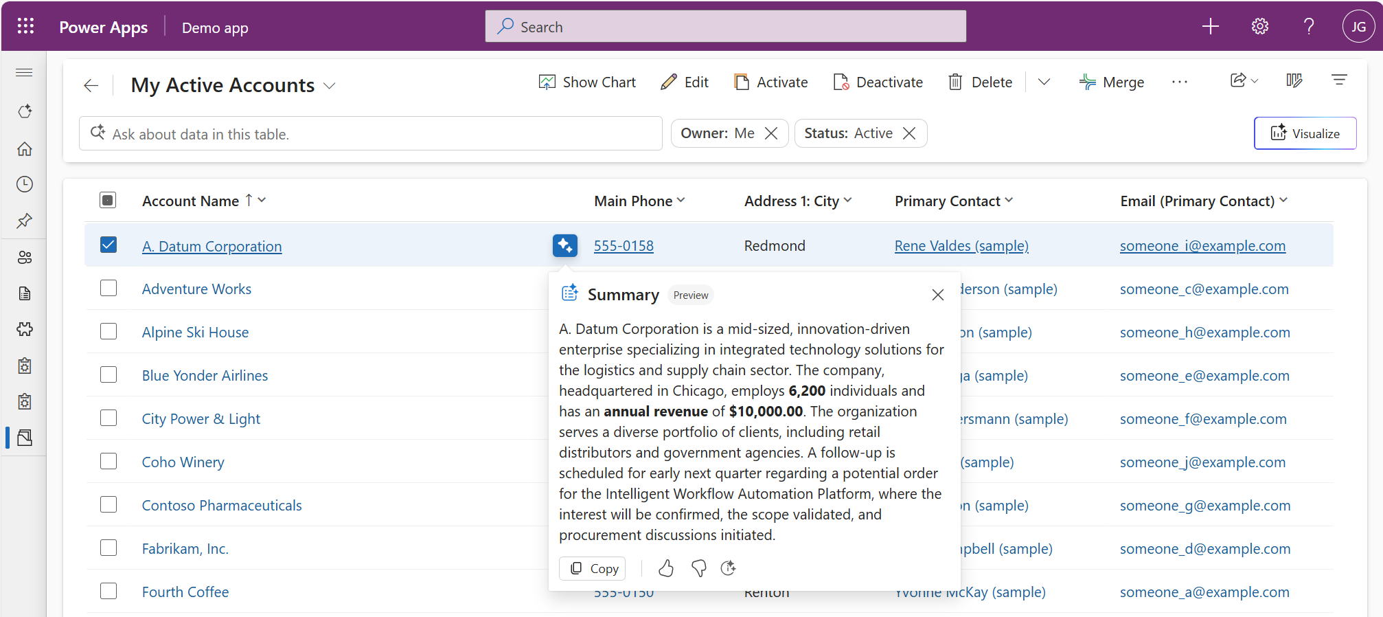 - 새로 고침(양식만 해당): 새로 고침 버튼을 선택하여 요약을 다시 생성하여 레코드에 대한 최신 업데이트를 반영합니다.