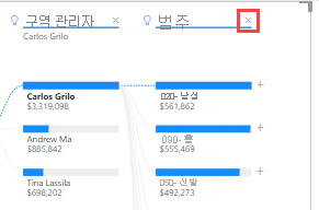 해당 제목 옆에 있는 X 를 선택하여 차원을 삭제할 수 있습니다.