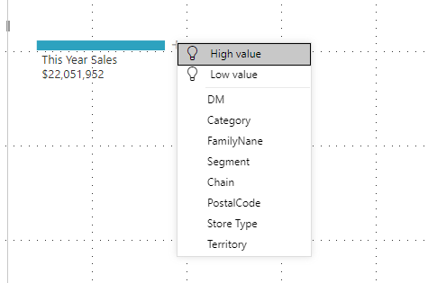 This Year Sales 옆에 있는 더하기 기호(+)를 선택하고 High value를 선택합니다.