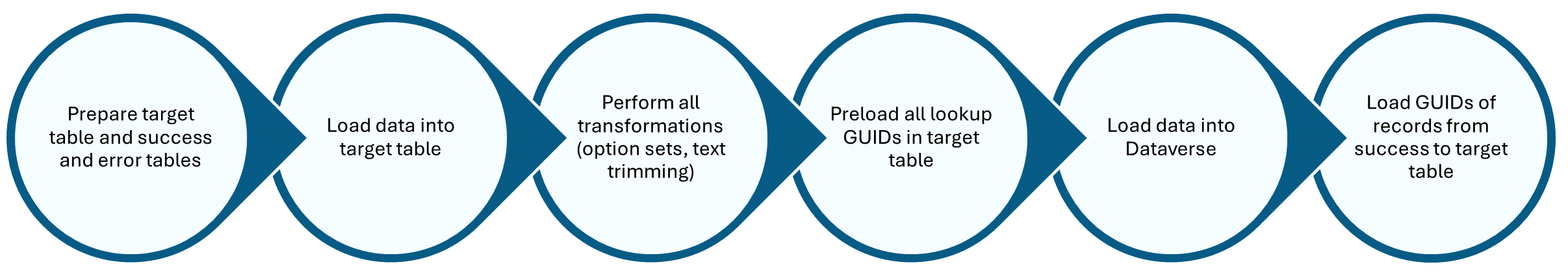 - 고유 식별자(예: importsequencenumber)를 사용하여 삽입하는 동안 GUID가 생성될 때 스테이징과 Dataverse 간의 레코드를 일치시킬 수 있습니다.