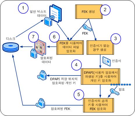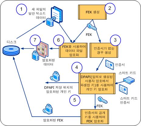 이 옵션에서 EFS 암호화 과정의 논리적 순서가 다음 그림에 나와 있습니다.