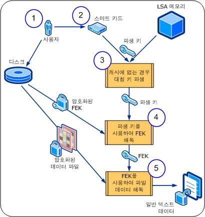 그림 3.7. Windows Vista에서 스마트 카드를 사용하는 EFS 암호화 순서 - 캐시된 키 모드