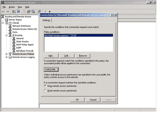 라우팅 및 원격 액세스의 왼쪽 창에서 원격 액세스 정책 을 클릭합니다.