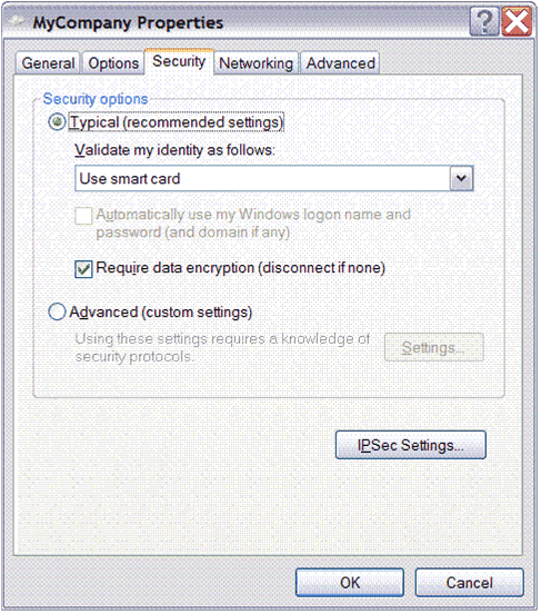 스마트 카드를 구현하여 원격 액세스 연결을 인증하면 단순한 사용자 이름과 암호 조합에 비해 뛰어난 보안 효과를 얻을 수 있습니다. 스마트 카드는 스마트 카드와 PIN을 조합하여 이중 인증을 구현합니다. 이중 인증은 손상시키기가 상당히 어려우며 PIN은 강력한 암호에 비해 사용자가 기억하기 쉽습니다.