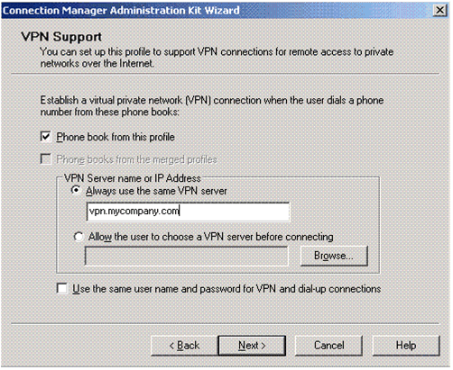 연결 관리자는 Windows XP의 표준 기능으로 네트워크, 전화 접속 및 VPN 연결을 쉽게 관리합니다. CMAK(연결 관리자 관리 키트)를 사용하여 연결 관리자 프로필을 사용자 지정하고, 클라이언트에 배포되는 VPN 연결을 자동으로 구성하는 설치 파일을 만들 수 있습니다.
