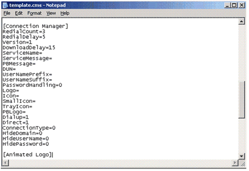 프로필 구성 파일은 텍스트 기반 파일로 파일 이름 확장명은 .inf, .cms, .cmp입니다. 마법사는 CMAK와 함께 설치된 기본 .template.inf, template.cms 및 template.cmp 파일을 읽습니다.
