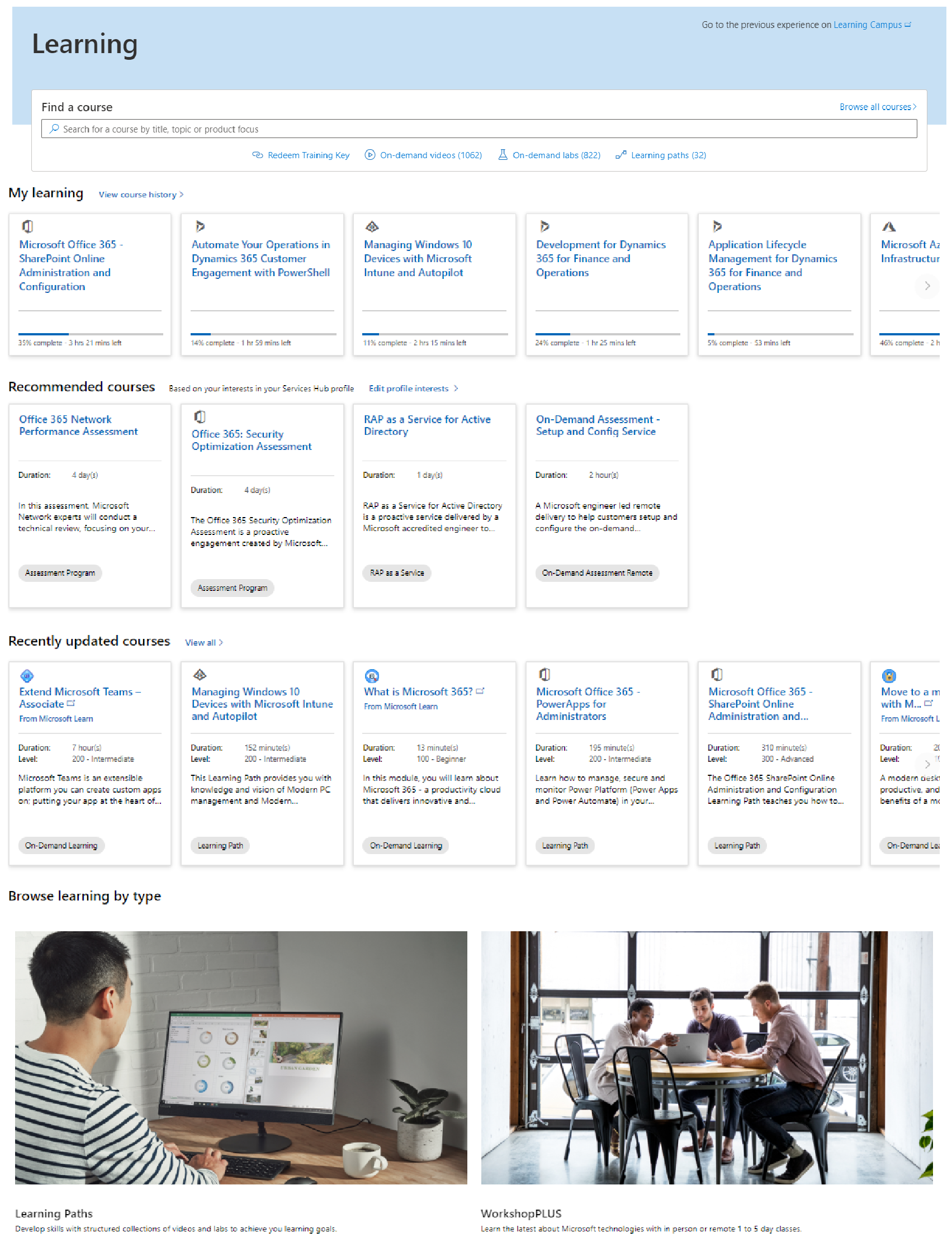 인기 있는 WorkshopPLUS 타이틀을 보완하는 Learning 경로는 Services Hub 학습 경험에서 모든 Microsoft 엔터프라이즈 지원 고객에게 제공됩니다. 이러한 학습 경로는 Azure 및 Office 365를 포함한 주제 영역을 다룹니다.