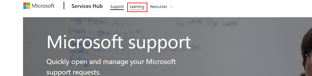 - Services Hub 내에서 기본 탐색에서 Learning을 선택합니다.