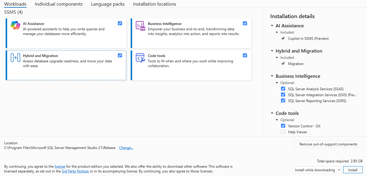 - SSMS 19.3 이상이 설치되어 있는지 확인합니다.