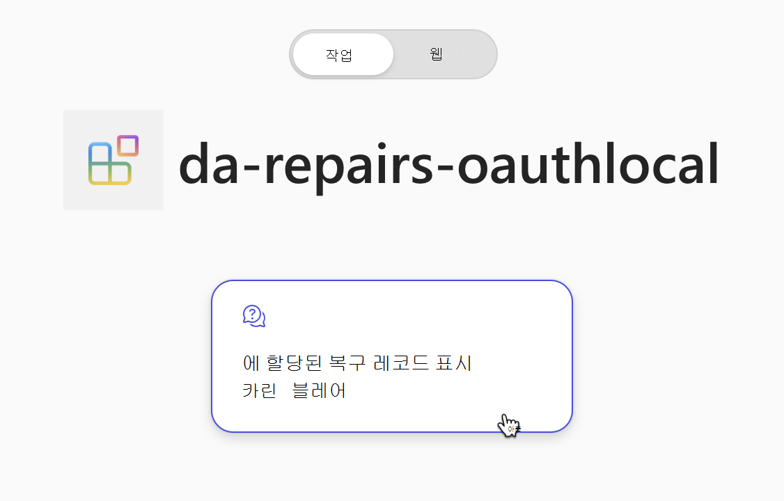 메시지가 표시되면 da-repairs-oauthlocal에 로그인을 선택하여 Microsoft 365 테넌트 로그인에 사용하는 것과 동일한 계정을 계속 사용하려면 API에 로그인합니다.
