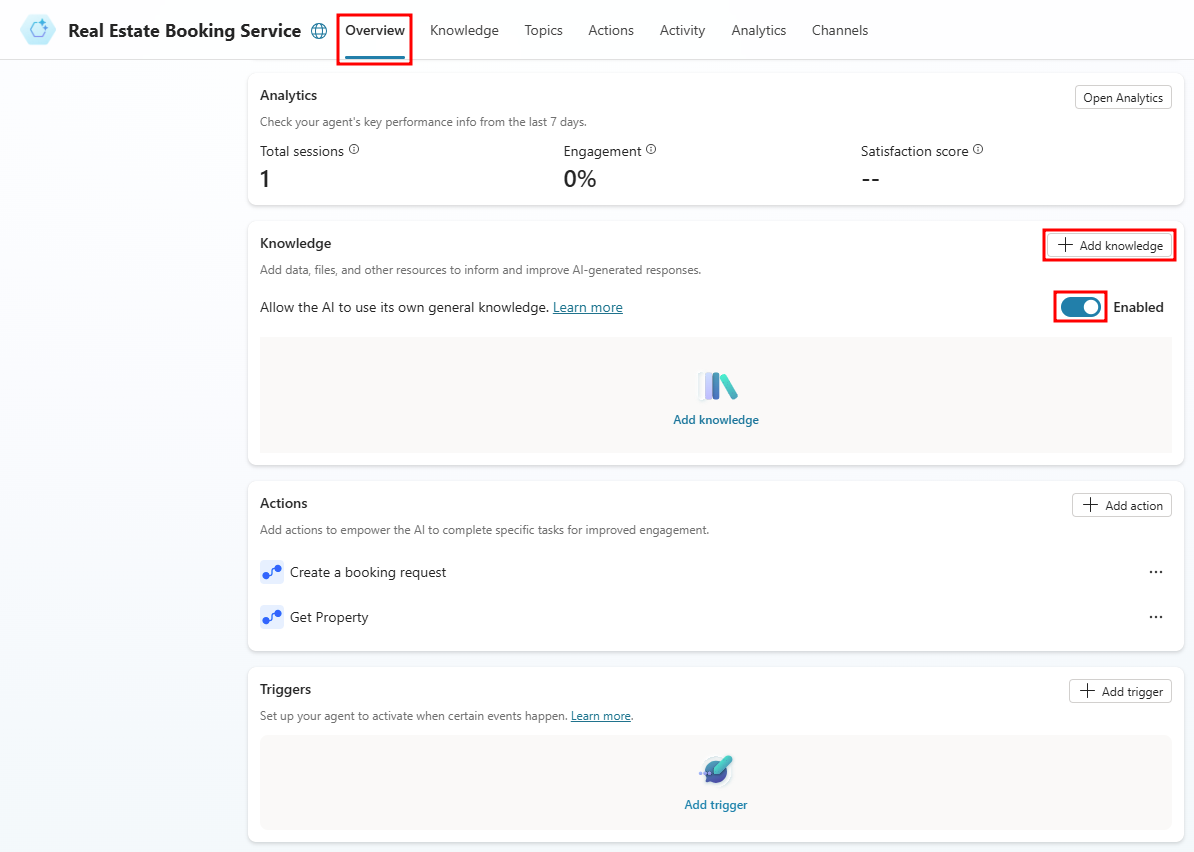 Select + Add knowledge.