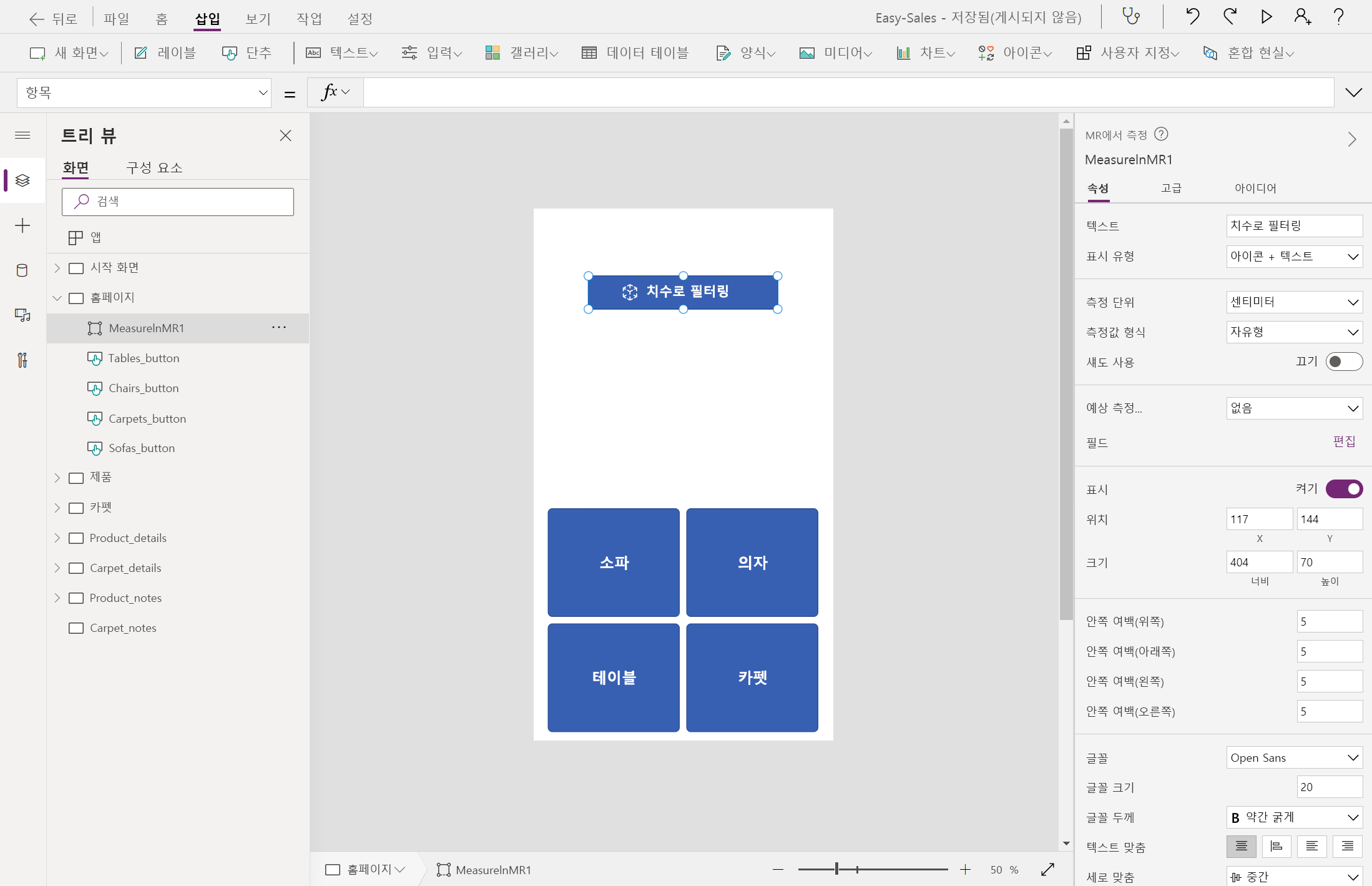 이 단원에서는 Power Apps의 주요 기능 구성 요소 중 일부를 사용합니다. 여기에는 MR 및 필터링 방법의 측정값이 포함됩니다. 사용자는 MR 구성 요소에서 Power Apps의 측정값을 사용하여 실제 환경에서 거리, 영역 및 볼륨을 측정할 수 있습니다 .