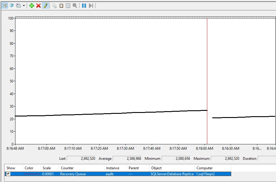 복구 큐가 값 0을 보고하는 경우 해당 보고서 당시 복구 큐가 발생하지 않는다고 가정할 수 있습니다. 그러나 프로덕션 환경이 사용 중인 경우 복구 큐가 정상 AlwaysOn 환경에서도 0이 아닌 값을 자주 보고하는 것을 관찰해야 합니다. 일반적인 프로덕션 중에는 이 값이 0과 0이 아닌 값 사이에서 변동하는 것을 관찰해야 합니다.