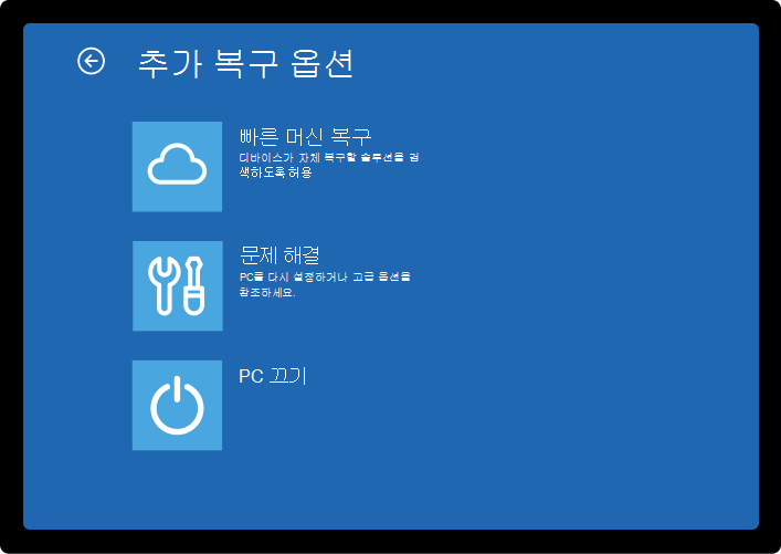 - 복구로 부팅: 디바이스가 복구 환경으로 부팅하여 빠른 머신 복구 프로세스를 시작합니다.