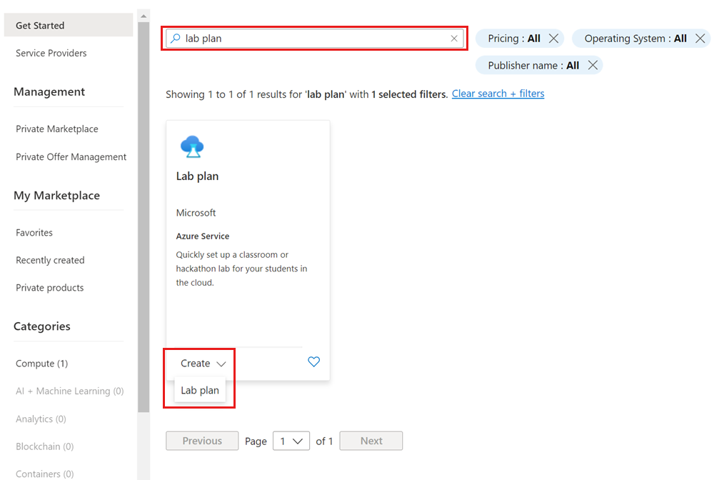 Follow these steps to create a lab plan from the Azure portal: