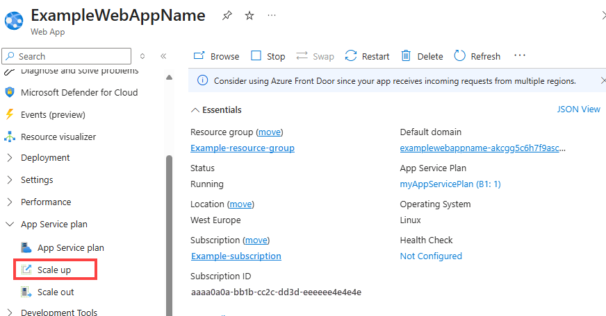 For information about scaling up to the Premium V4 tier, see Configure Premium V4 tier for App Service.