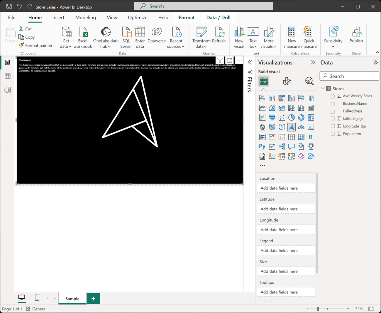 Once the Azure Maps Power BI visual is enabled, select the Azure Maps icon from the Visualizations pane.