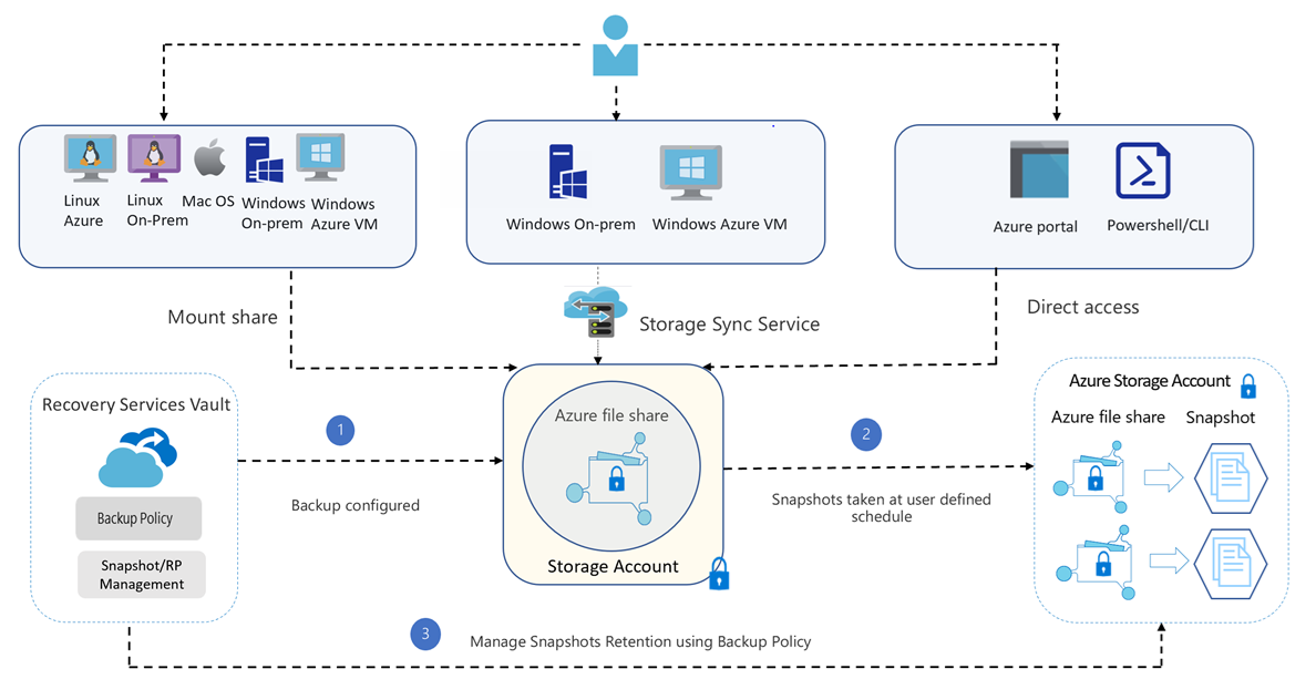 Azure Files backup is a native cloud solution that protects your data and eliminates on-premises maintenance overheads. Azure Backup integrates with Azure File Sync, centralizing your File Share data and backups. The secure, managed backup solution supports snapshot and vaulted backups to protect your enterprise File Shares, ensuring data recovery from accidental or malicious deletion.