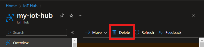 To delete an IoT hub, open your IoT hub in the Azure portal, then choose Delete.