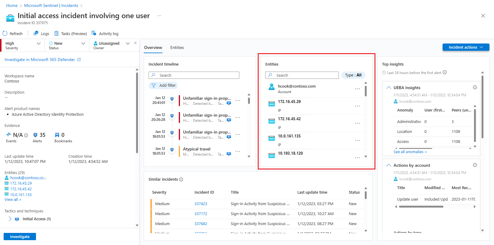 Select an incident to investigate. On the Incident details pane, select View full details to open the Incident details page.