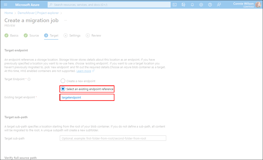For more information on endpoint resources, see the Managing Storage Mover endpoints article.