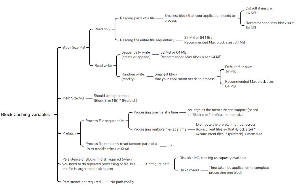 | Block size | The size in MB of each block to cache in memory | 16 MB |