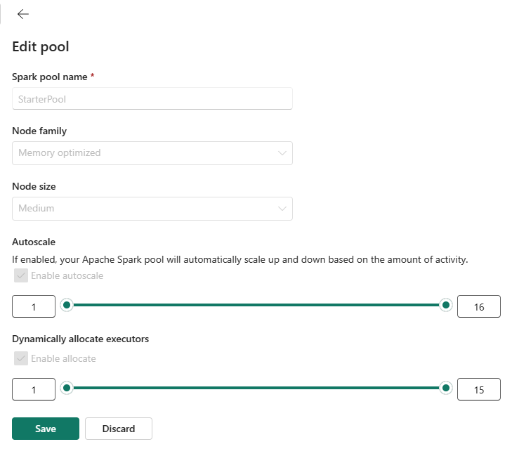 Configure starter pool settings