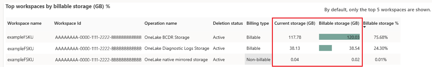 The workspace details table includes two columns: Current storage and Billable storage. Billable storage reflects cumulative data usage over the month. The total charge for data stored isn't taken on one day of the month, but on a pro-rated basis throughout the month. You can estimate the monthly price as the billable storage (GB) multiplied by the price per GB per month.