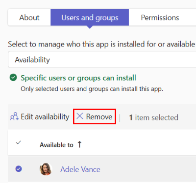 To remove one or more users or groups from an app, select the rows and select Remove.
