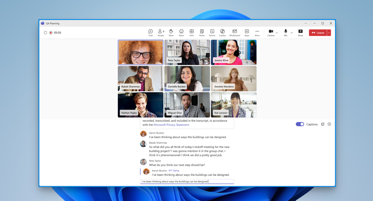 Real-Time Text (RTT) in Microsoft Teams allows participants to instantly send and see written messages on the screen during calls and meetings. RTT displays each character while participants type, which is beneficial for participants with accessibility needs and in situations where voice communication isn’t practical. Unlike chat, RTT messages are sent and received immediately, without participants taking any extra action to send. As an admin, you can manage whether your users can use RTT in Teams meetings, group calls, and 1:1 VoIP calls.
