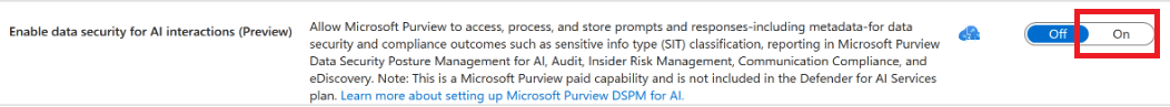 This feature requires a Microsoft Purview license, which isn't included with Microsoft Defender for Cloud's Defender for AI Services plan.