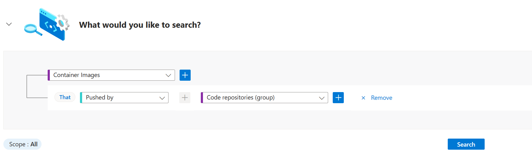 (Optional) Select + by Container Images to add other filters to your query, such as Has vulnerabilities to filter only container images with CVEs.