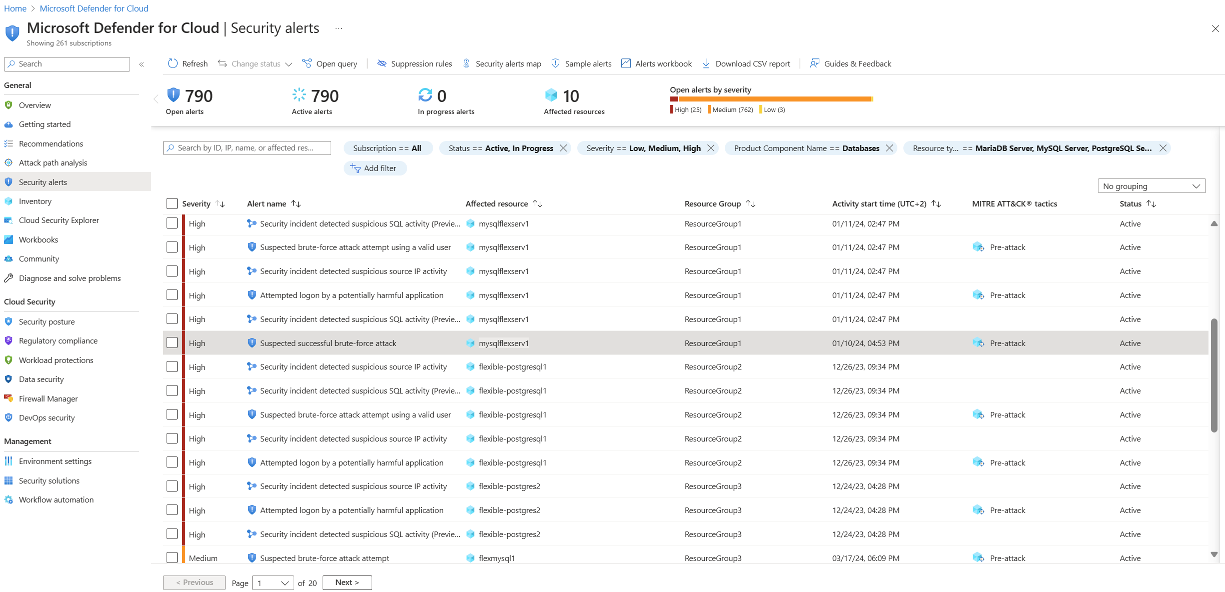 View active threats at the subscription level from within the Defender for Cloud portal pages: