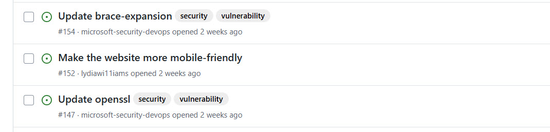 To close the loop between security and engineering teams, you can create a GitHub issue that prioritizes the security issues that the engineering team should focus on. This prioritization can include passing findings that GHAS didn't pick up but that Defender for Cloud detected for CVE IDs that aren't part of direct dependencies. These findings can include vulnerabilities in the base image, operating system, or software like NGINX.