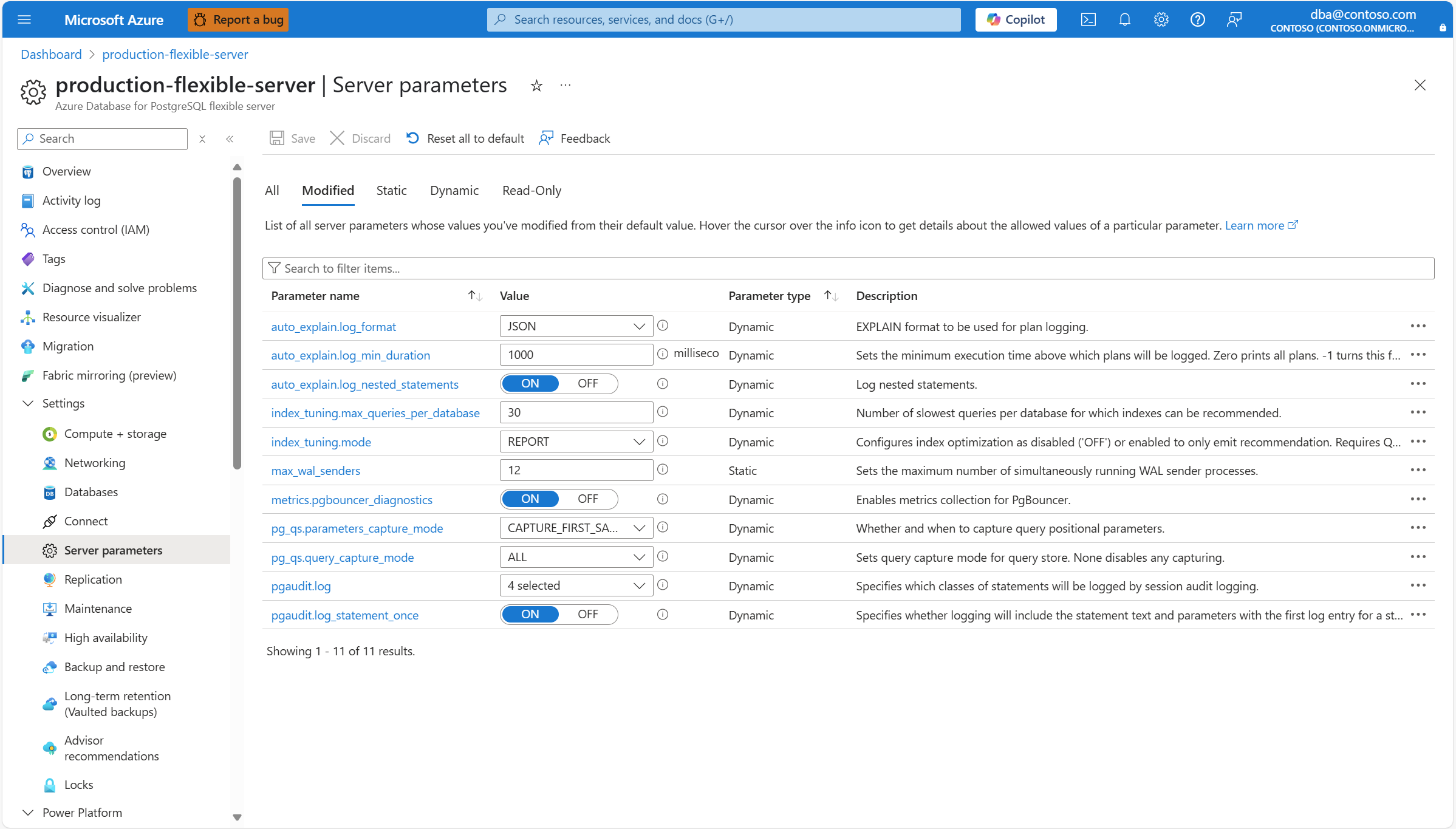 This article provides step-by-step instructions to list all server parameters with modified defaults of an Azure Database for PostgreSQL flexible server.