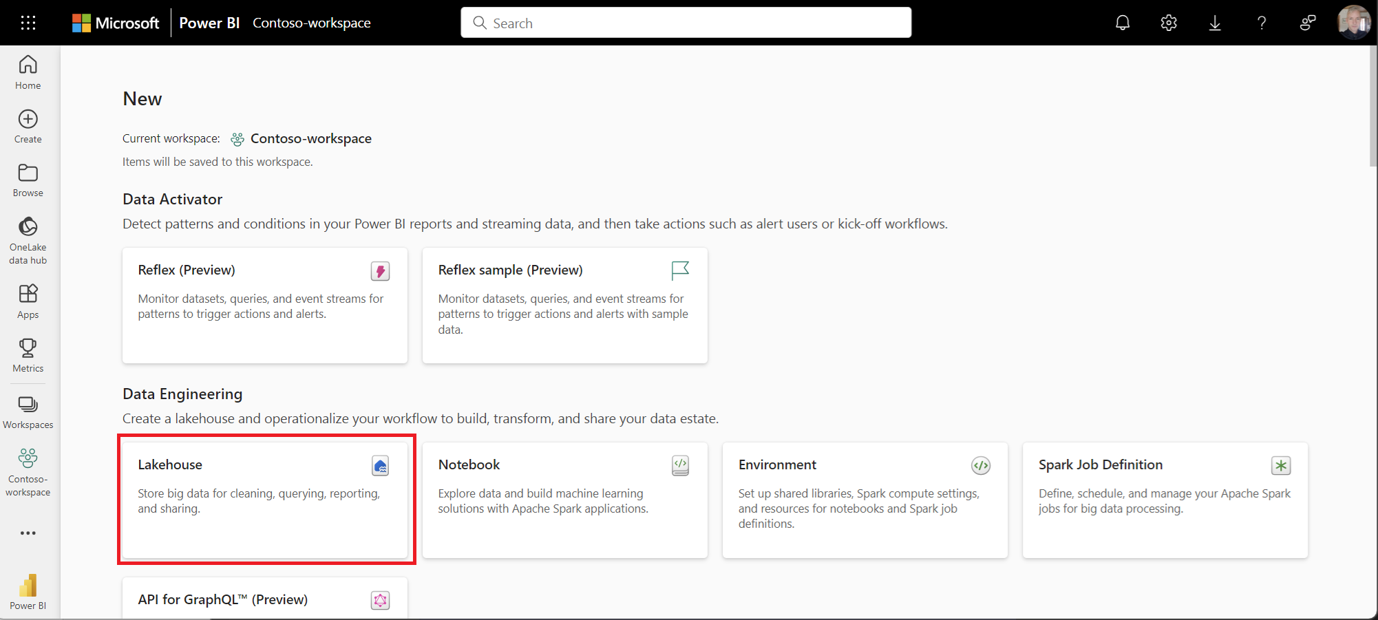 - Select the workspace where you created the lakehouse and then select the lakehouse.