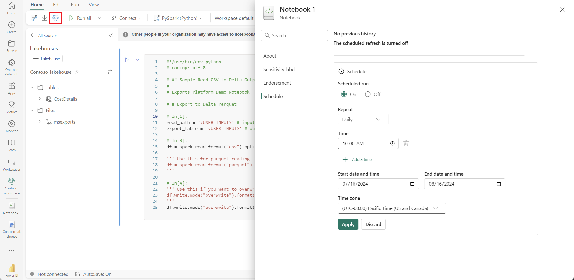 - In the lakehouse, find the directory that you created when you set up the export. The Directory is in the Files section.