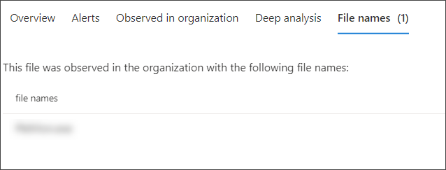 The File names tab lists all names the file has been observed to use, within your organizations.