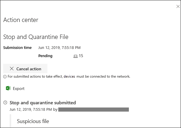 The Action center provides information on actions that were taken on a device or file. You can view the following details:
