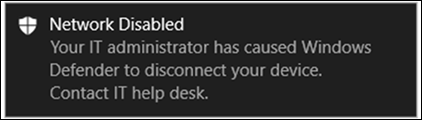 When a device is being isolated, the following notification is displayed to inform the user that the device is being isolated from the network: