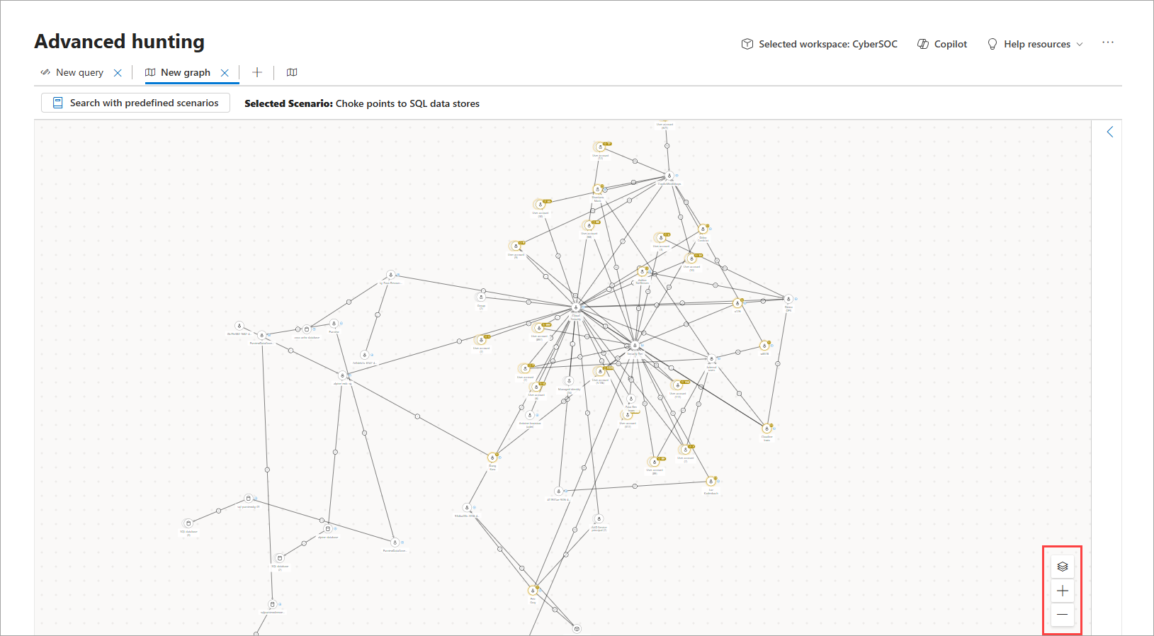 The hunting graph lets you search with predefined scenarios. These scenarios are prebuilt advanced hunting queries that help you answer specific and common questions for specific use cases.