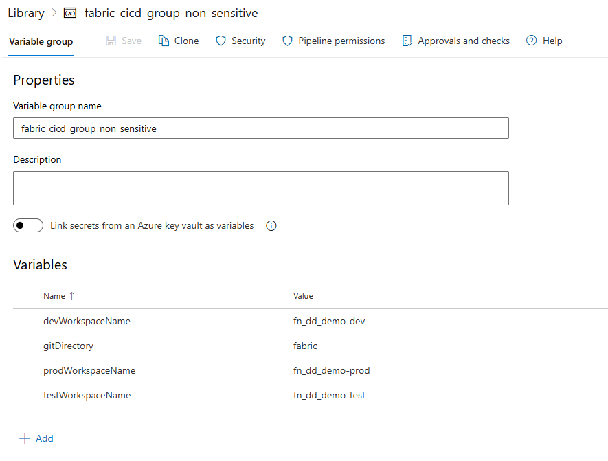 4.3 Variable Group: fabric_cicd_group_non_sensitive