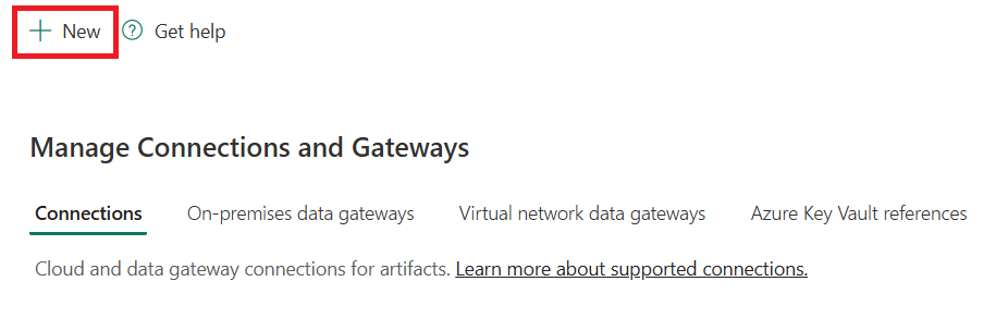 The New connection pane opens on the left side of the page.