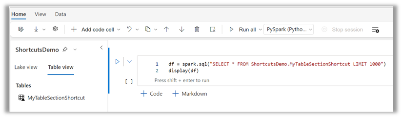 Access shortcuts as tables in a Spark notebook