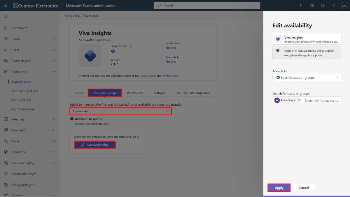 Select Edit availability to make the app available for selected users or allow it for everyone to increase adoption.