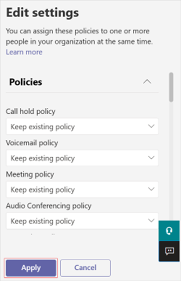 You can use the Microsoft Teams admin center to edit a policy, including the Global (Org-wide default) policy and custom policies that you create. After you edit or assign a policy, it can take a few hours for changes to take effect. To edit an agent or app setup policy, follow these steps: