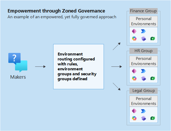 Environment routing is a premium governance feature. This feature allows Power Platform admins to automatically direct new or existing makers into their own personal developer environments when they visit Copilot Studio, Power Apps, Power Automate, or Power Automate for desktop. Environment routing offers makers a personal, safe space to build with Microsoft Dataverse without the fear of others accessing their apps or data.